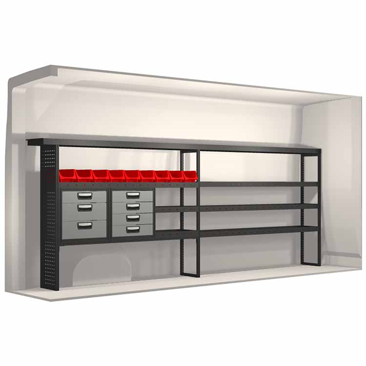 Allt monteringsmaterial som följer med respektive inredningskit är avsett för fastsättning i karossen. Vinklar för montage i golv- och väggskenor beställes separat.