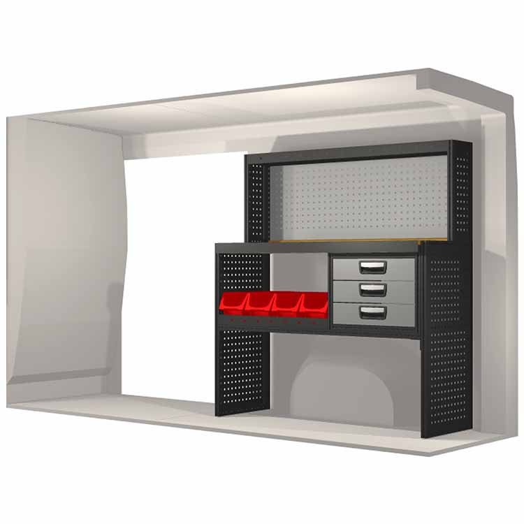 Allt monteringsmaterial som följer med respektive inredningskit är avsett för fastsättning i karossen. Vinklar för montage i golv- och väggskenor beställes separat.
