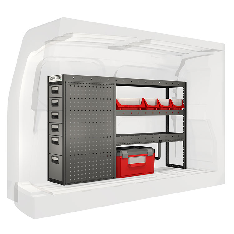 Allt monteringsmaterial som följer med respektive inredningskit är avsett för fastsättning i karossen. Vinklar för montage i golv- och väggskenor beställes separat.