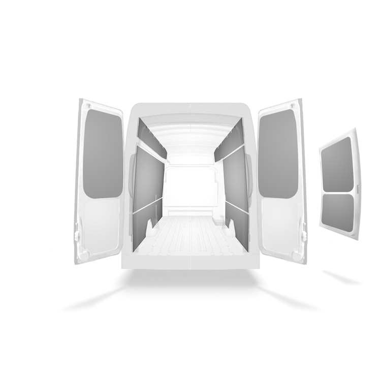 Allt monteringsmaterial som följer med respektive inredningskit är avsett för fastsättning i karossen. Vinklar för montage i golv- och väggskenor beställes separat.