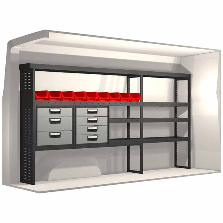 Allt monteringsmaterial som följer med respektive inredningskit är avsett för fastsättning i karossen. Vinklar för montage i golv- och väggskenor beställes separat.