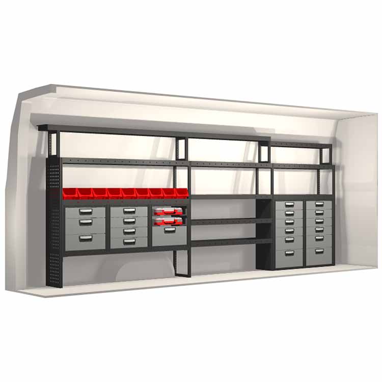 Allt monteringsmaterial som följer med respektive inredningskit är avsett för fastsättning i karossen. Vinklar för montage i golv- och väggskenor beställes separat.