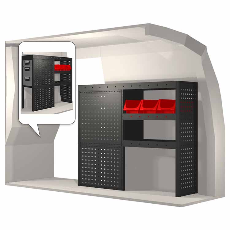 Allt monteringsmaterial som följer med respektive inredningskit är avsett för fastsättning i karossen. Vinklar för montage i golv- och väggskenor beställes separat.