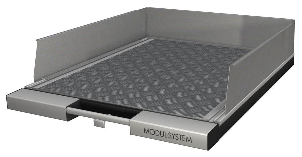 Modul-Systems nya lastplattform är designad för tuffa tag. Den stabila, utdragbara plattformen klarar laster upp till 250 kg. Trots ökad lastkapacitet har vi, tack vare genomtänkt design och smarta materialval, lyckats sänka vikten med 25 procent.