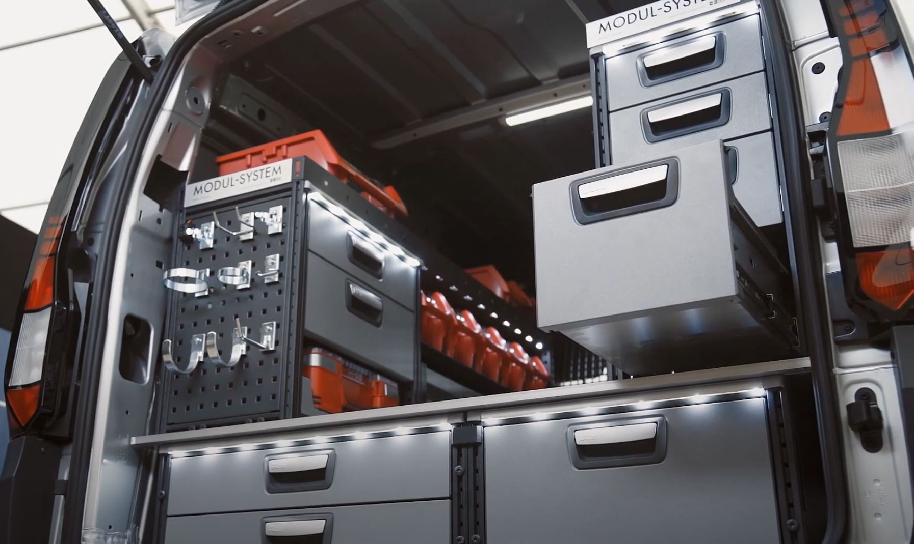 Volkswagen visar upp sin nya Caddy, fullt utrustad med bilinredning från Modul-System, Modul-Floor dubbelgolv och Modul-Connect LED-belysning.