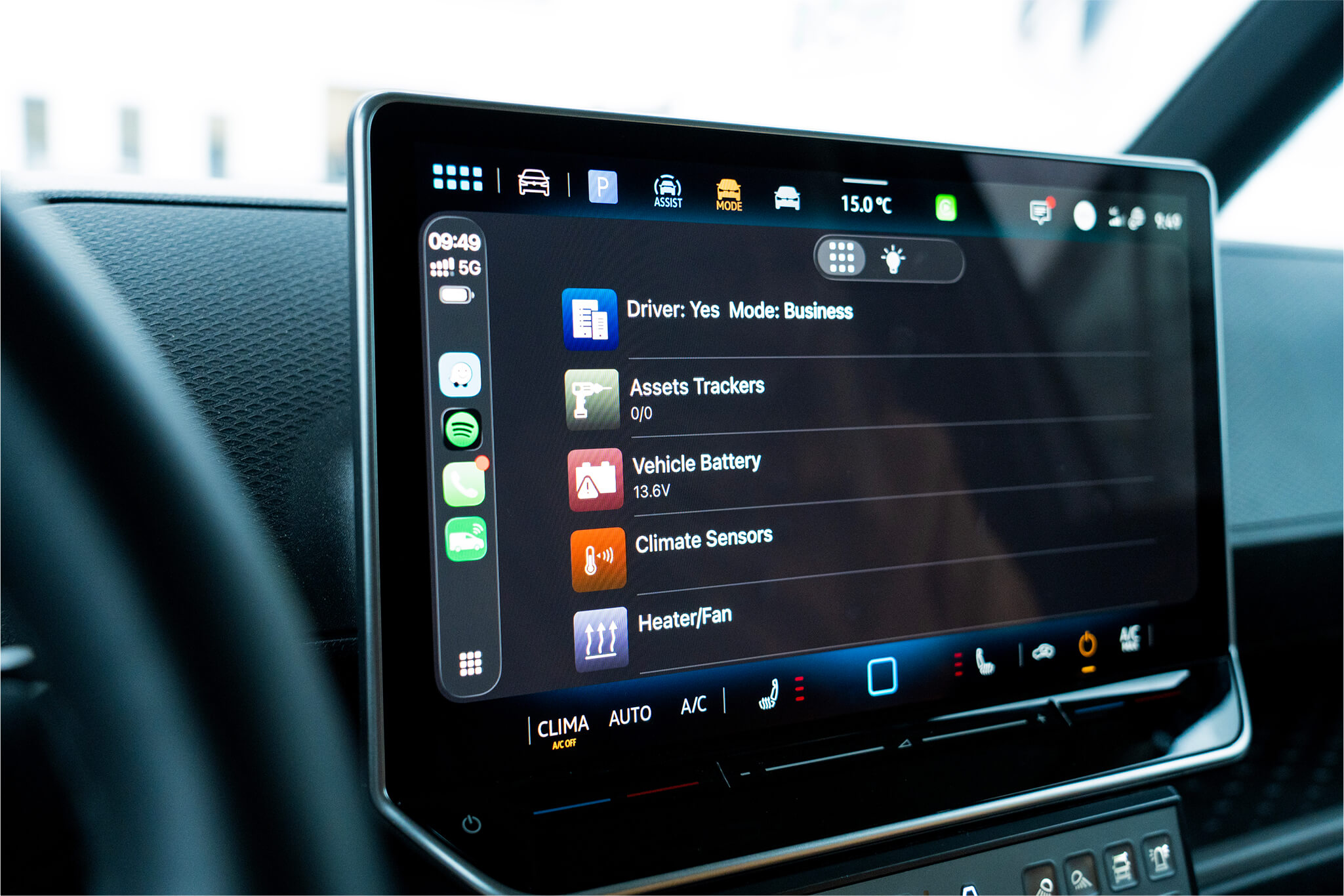 Med denna nya integration kan användare övervaka och styra sitt Modul-Connect-system direkt från fordonets display. Appen speglas från användarens smartphone till bilens skärm, vilket gör att funktioner kan hanteras i realtid utan att telefonen behöver användas. Det bidrar till ökad säkerhet, enkelhet och effektivitet på vägen.