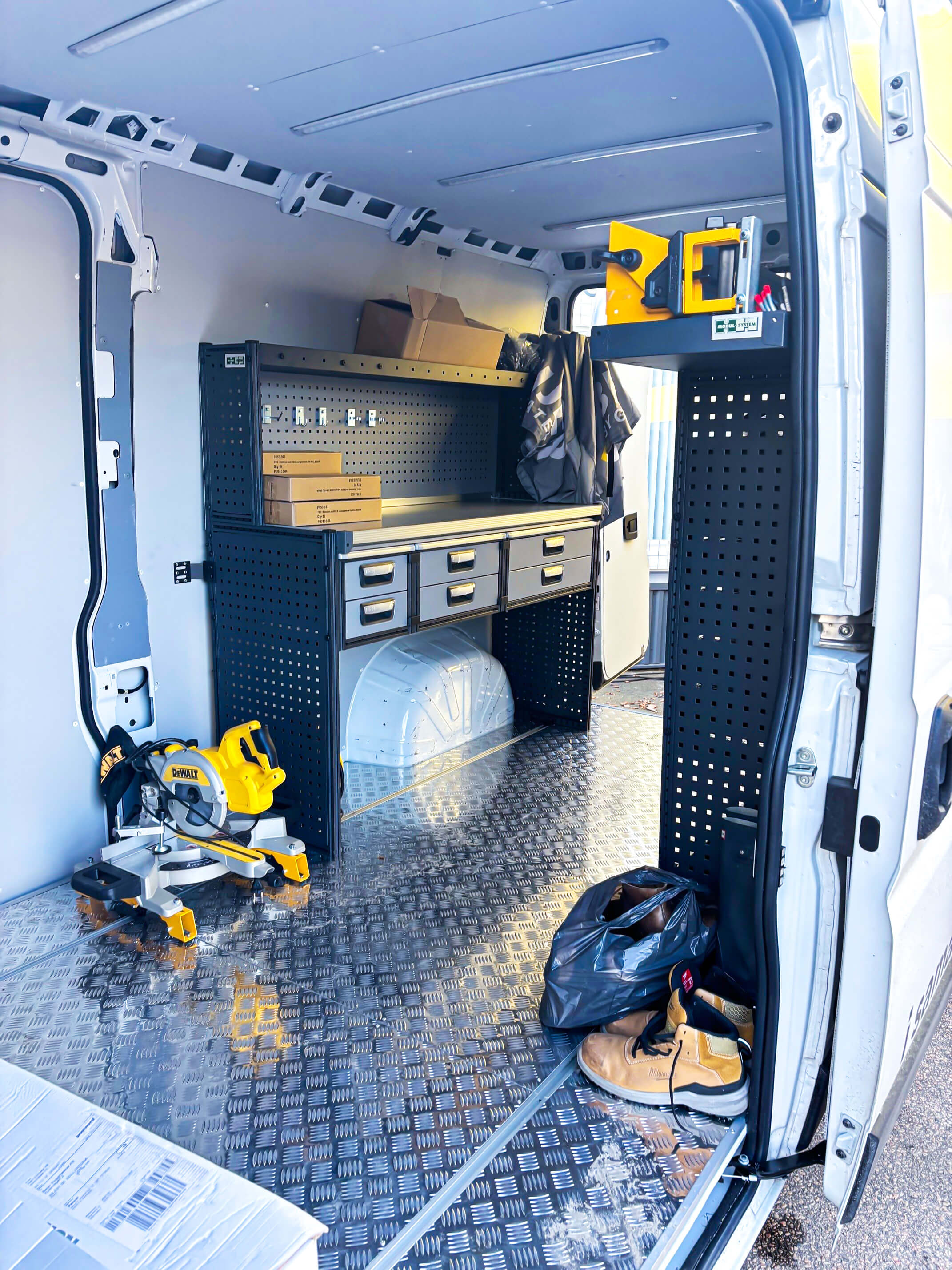 Modul-System är en av de leverantörer som finns på alla stopp. Vi samarbetar med Toyota Transportbilar Sverige som utrustat en demobil med Modul-Systems inredning.