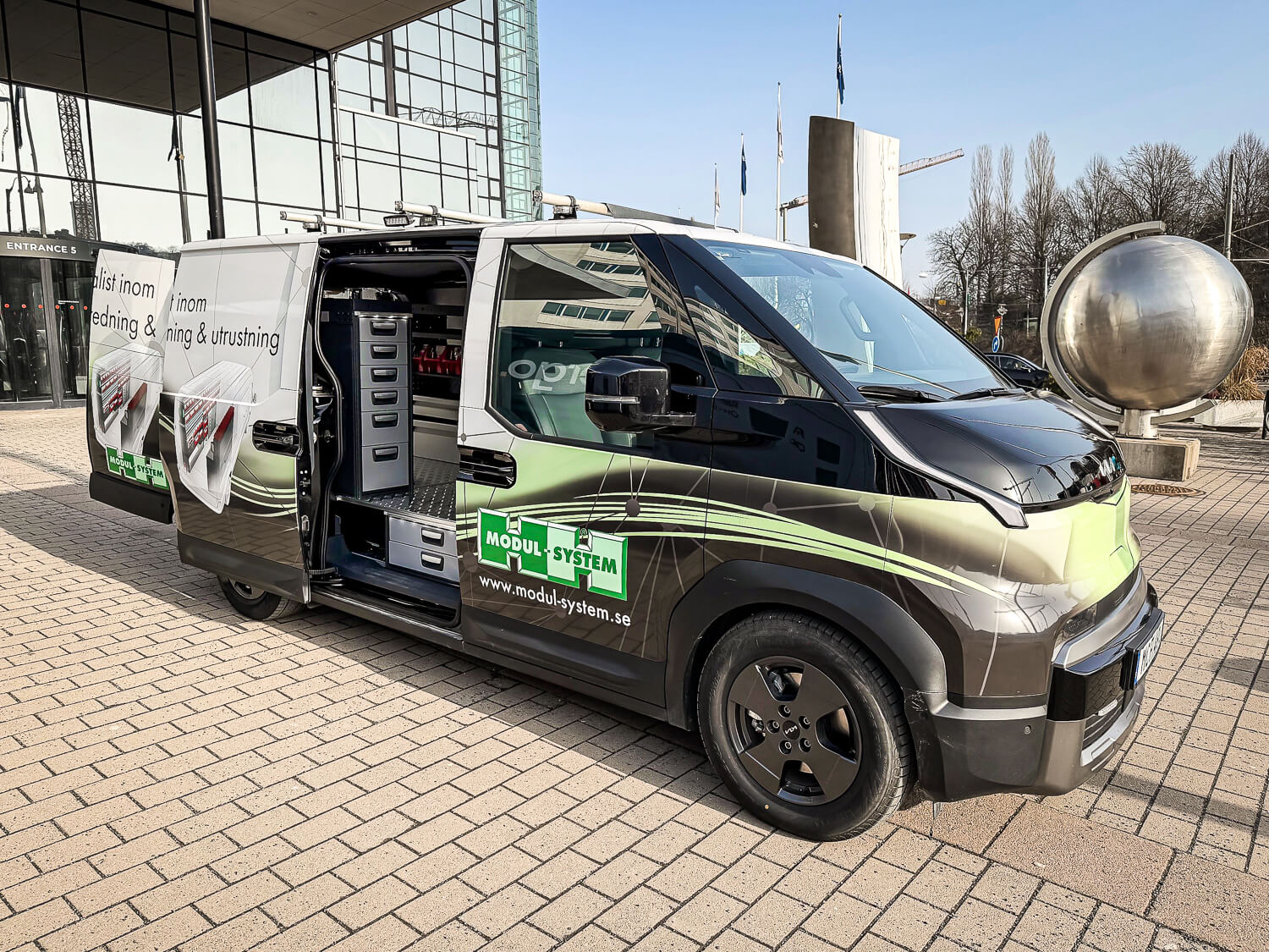 Modul-System finns på plats på Underhållsmässan 2026. Inomhus visar vi våra produkter i Renaults monter och på utsidan vid entrén från Korsvägen finns vår demobil Kia PV5.