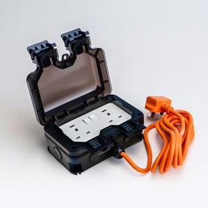 Dual Power Socket IP66 UK plug, 3m orange cable