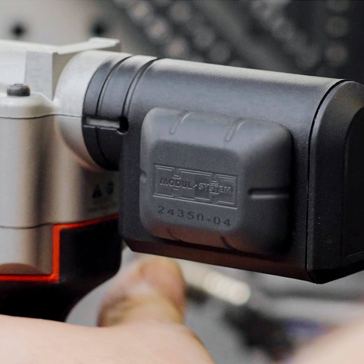 Spårsändaren är en robust Bluetooth-beacon, utformad för att skydda verktyg och tillgångar genom smidig spårning via Modul-Connect-appen.