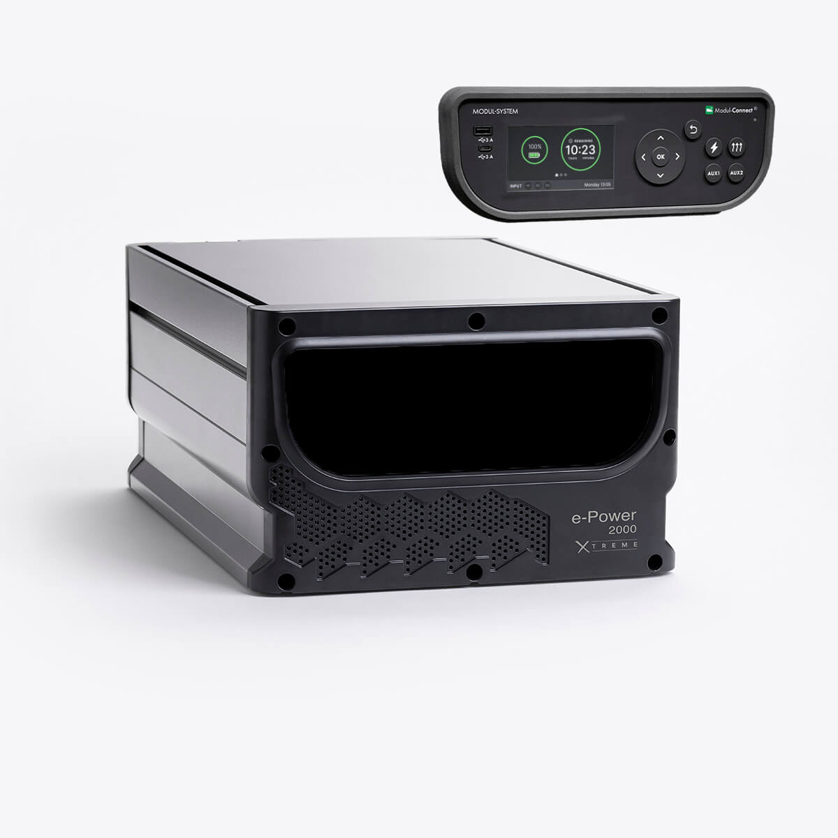 The e-Power 2000 X-treme with Remote Display is an auxiliary battery that doubles as a control unit, making it effortless to manage your heater and inverter. It ensures your mobile workspace is always ready with reliable extra power.