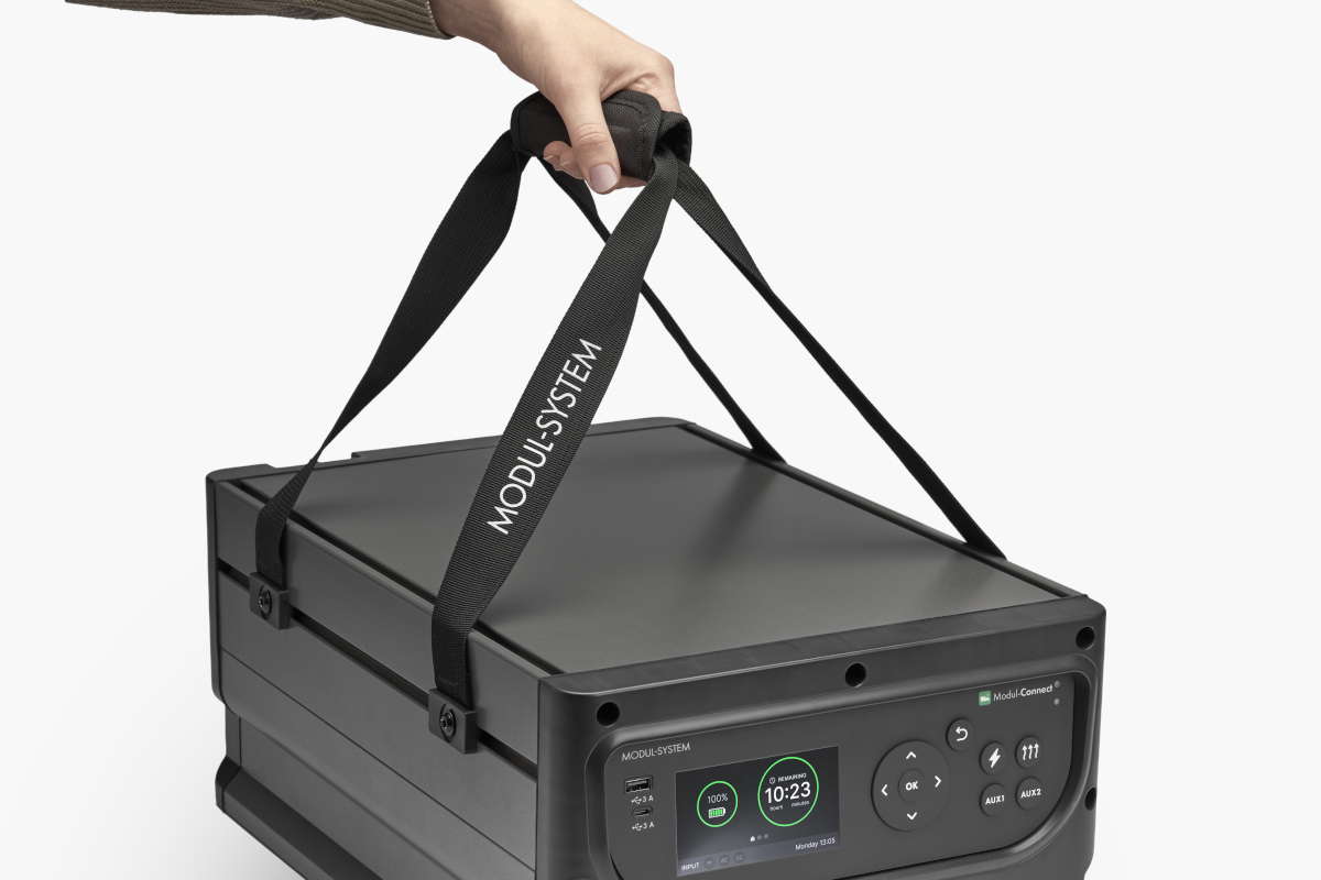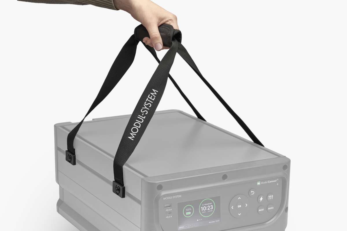 Detta praktiska handtag fästs enkelt i T-spåren på e-Power-enheten och gör det smidigare att bära och transportera den. En stabil och ergonomisk lösning som ökar bekvämligheten vid förflyttning.