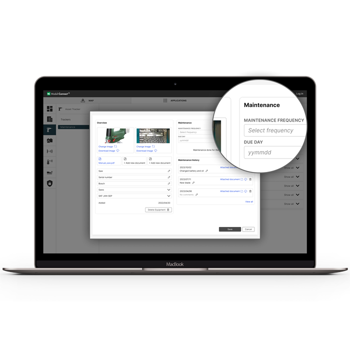 ✔️ Realtidsspårning av verktyg + status (position och servicebehov).