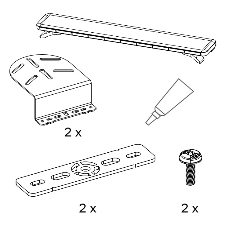 Kit bestående av en blixtljusramp och ett komplett set beslag för montering direkt i fordonets OEM fix points. Användningen av de integrerade fästpunkterna innebär att inga onödiga hål behöver borras i fordonets kaross. Därmed elimineras risken för rost, vilket är positivt för bilens andrahandsvärde.