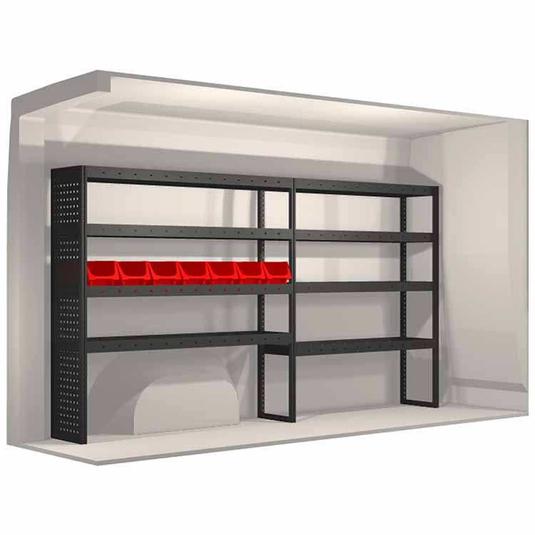 Inredningsförslaget är speciellt utformat för att passa bilmodellen perfekt. I de fall då hurtsar ingår så är dessa utrustade med kullagerskenor samt fullt utdragbara lådor med utdragsstopp. För ökad funktionalitet och minskad ljudnivå under färd är samtliga hyllor utrustade med gummimattor och hurtslådor med skumplast. Monteringssats ingår.