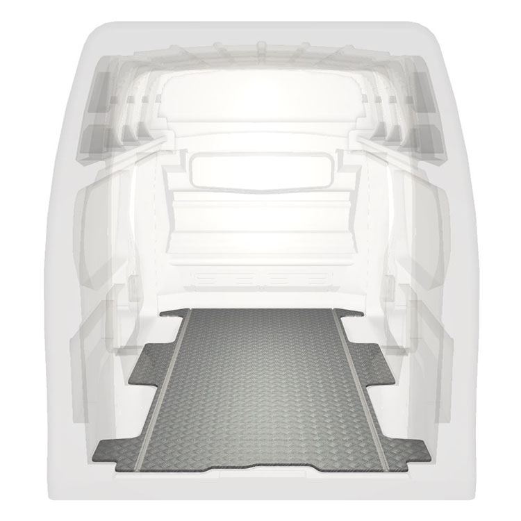 Lätt och robust golv med halkfri aluminiumdurk till en Renault Trafic / Opel Vivaro / Fiat Talento / Nissan NV300. Golvets integrerade skenor (längsgående) används för snabb och säker installation av bilinredning och andra tillbehör.