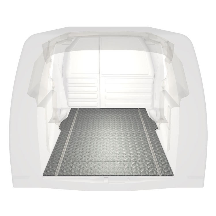 Lätt och robust golv med halkfri aluminiumdurk till en Citroën Berlingo / Peugeot Partner. Golvets integrerade skenor (längsgående) används för snabb och säker installation av bilinredning och andra tillbehör.
