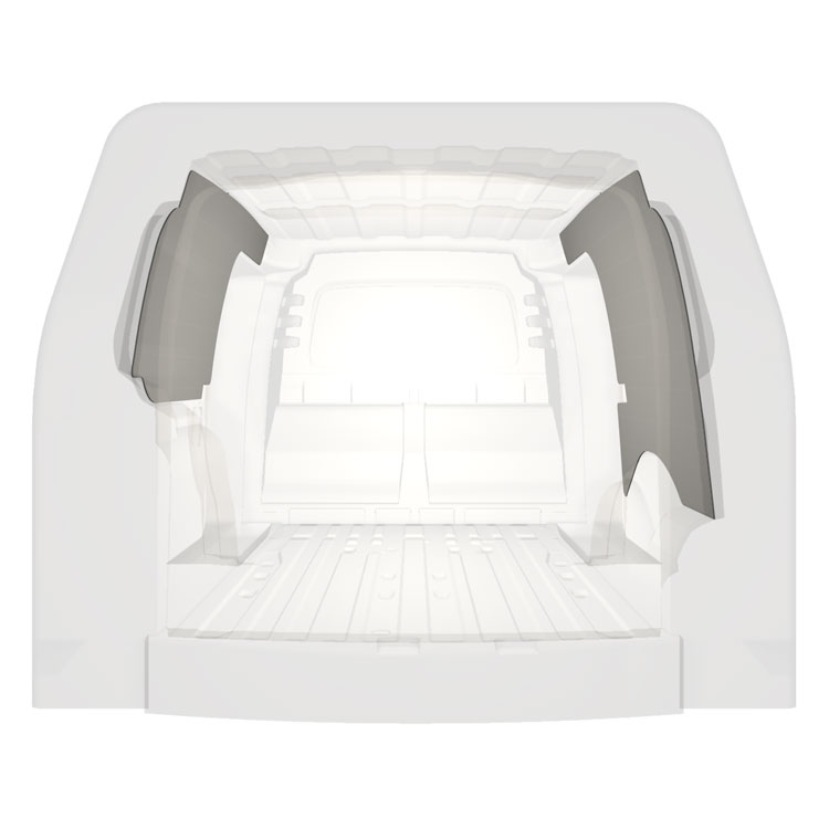 Den färdigskurna beklädnaden är designad för att täcka hela fordonets innerväggar och monteras med skruv.