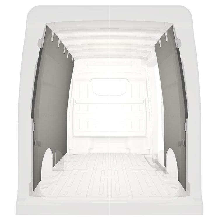 Den färdigskurna beklädnaden är designad för att täcka hela fordonets innerväggar och monteras med skruv.