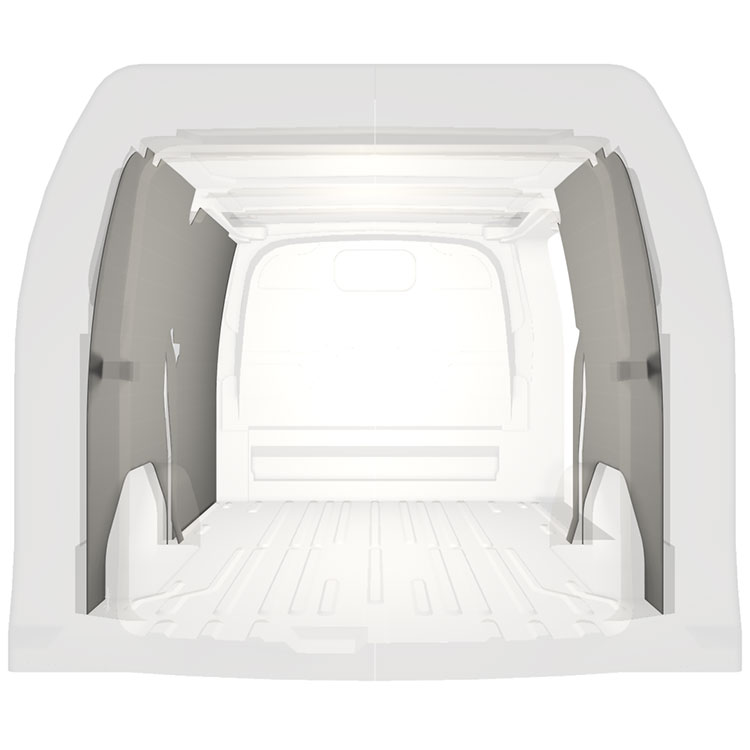 Den färdigskurna beklädnaden är designad för att täcka hela fordonets innerväggar och monteras med skruv.