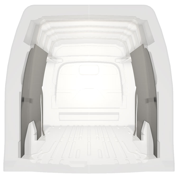 Den färdigskurna beklädnaden är designad för att täcka hela fordonets innerväggar och monteras med skruv.