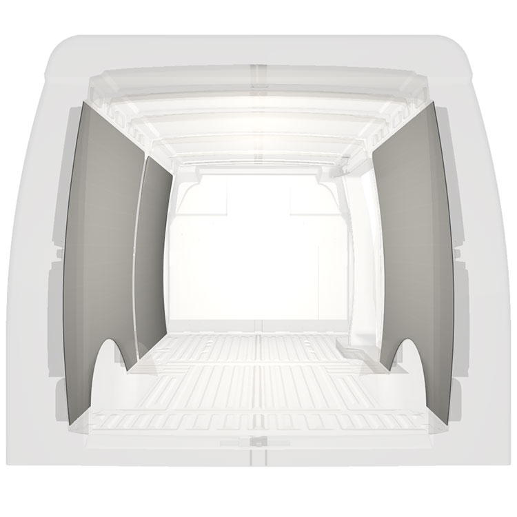 Den färdigskurna beklädnaden är designad för att täcka hela fordonets innerväggar och monteras med skruv.