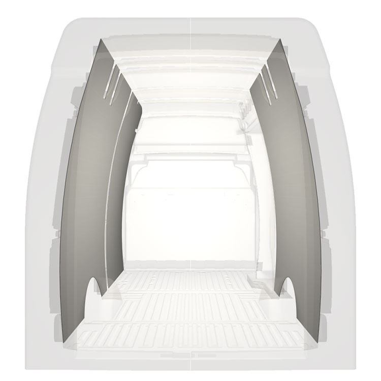Den färdigskurna beklädnaden är designad för att täcka hela fordonets innerväggar och monteras med skruv.