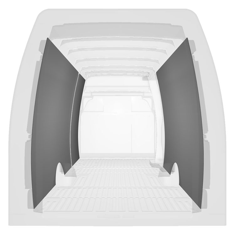 Den färdigskurna beklädnaden är designad för att täcka hela fordonets innerväggar och monteras med skruv.