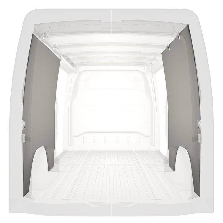 Den färdigskurna beklädnaden är designad för att täcka hela fordonets innerväggar och monteras med skruv.