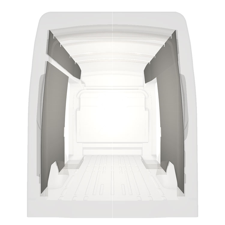 Den färdigskurna beklädnaden är designad för att täcka hela fordonets innerväggar och monteras med skruv.
