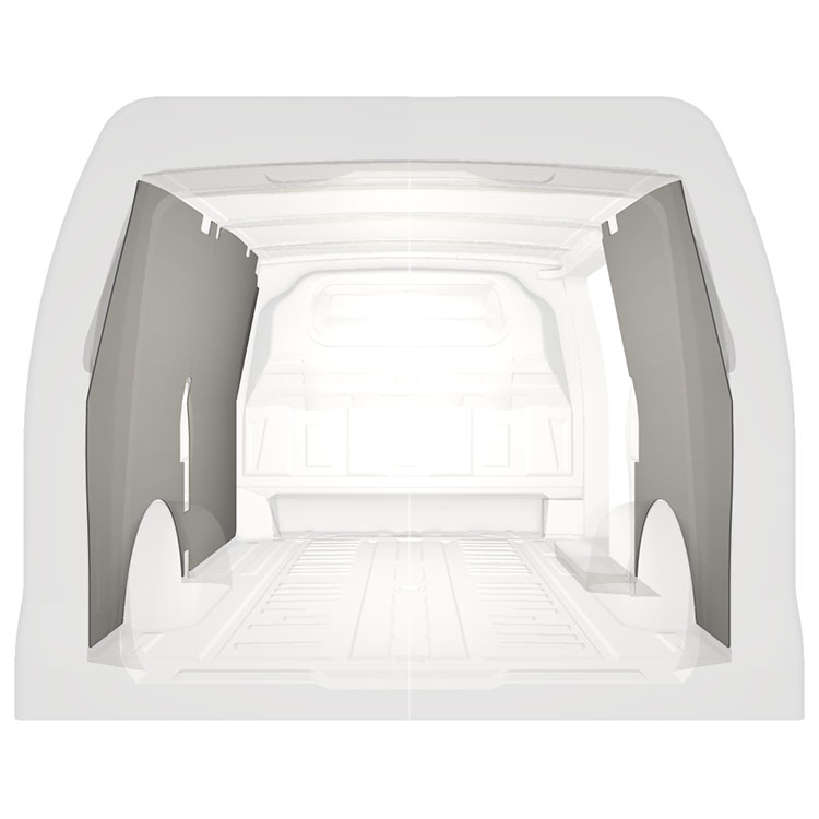 Den färdigskurna beklädnaden är designad för att täcka hela fordonets innerväggar och monteras med skruv.