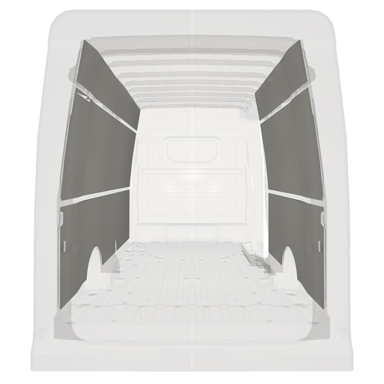 Beklädnad för sidodörrar, bakdörrar samt tak säljes separat.