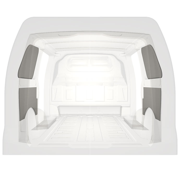 Beklädnad för sidodörrar, bakdörrar samt tak säljes separat.