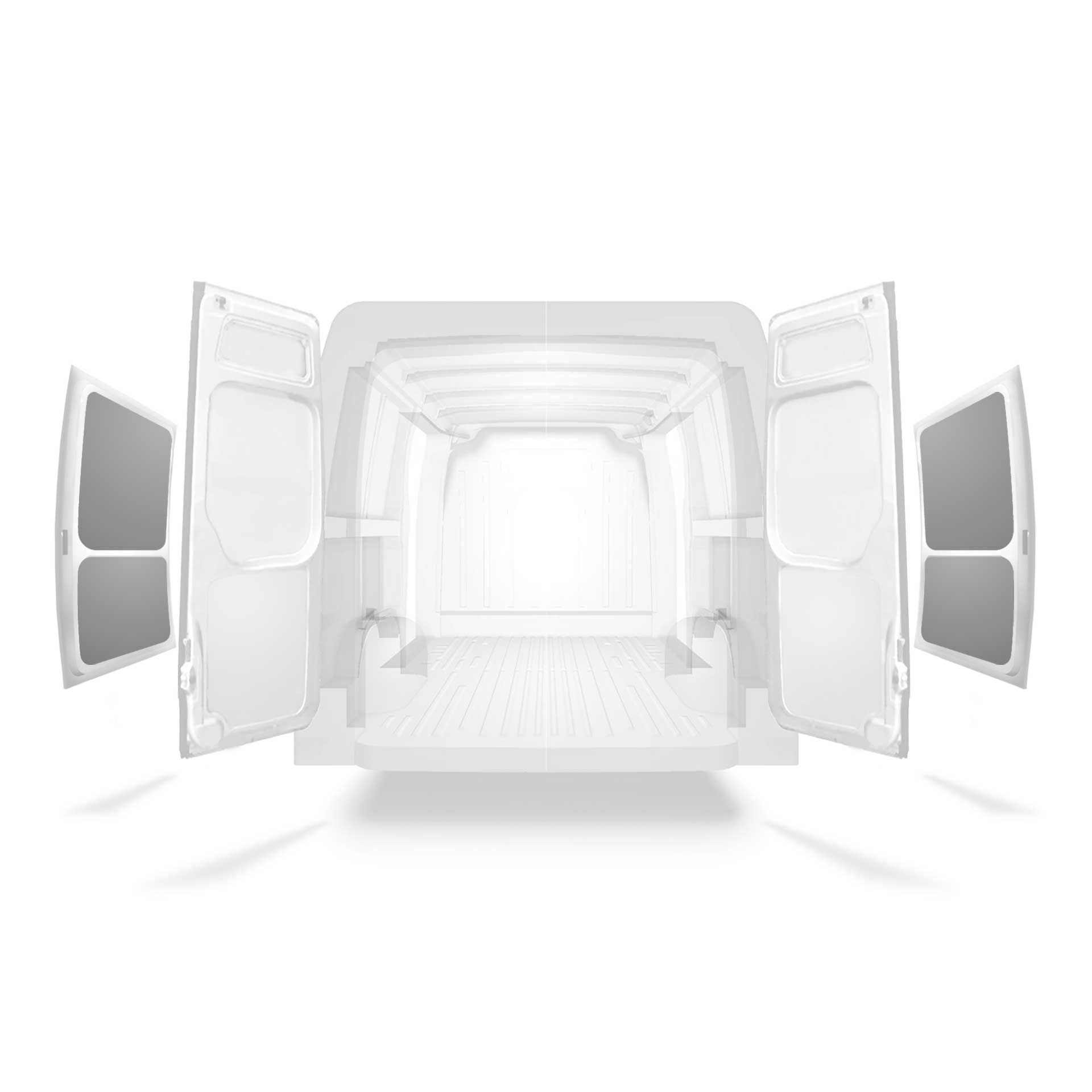 Beklädnad för innerväggar, bakdörrar samt tak säljes separat. Monteringsmaterial säljes också separat.