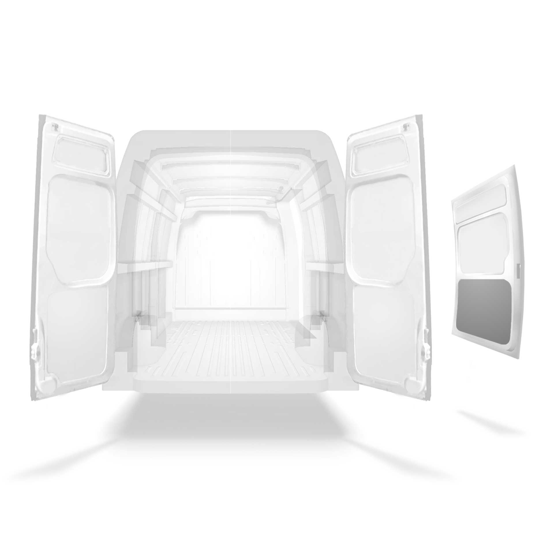 Beklädnad för innerväggar, bakdörrar samt tak säljes separat. Monteringsmaterial säljes också separat.