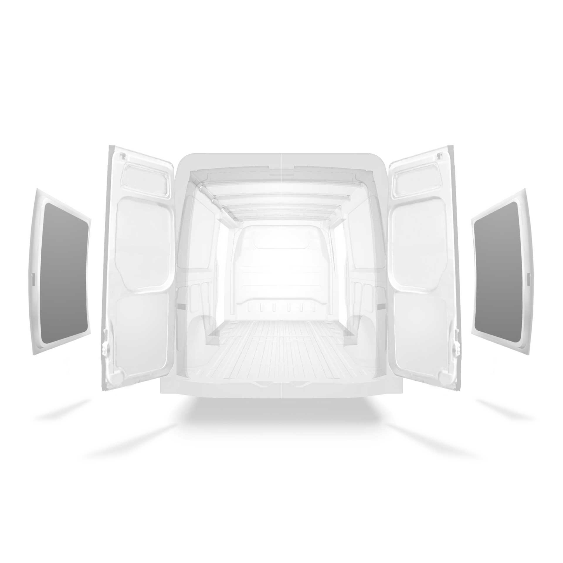 Beklädnad för innerväggar, bakdörrar samt tak säljes separat. Monteringsmaterial säljes också separat.