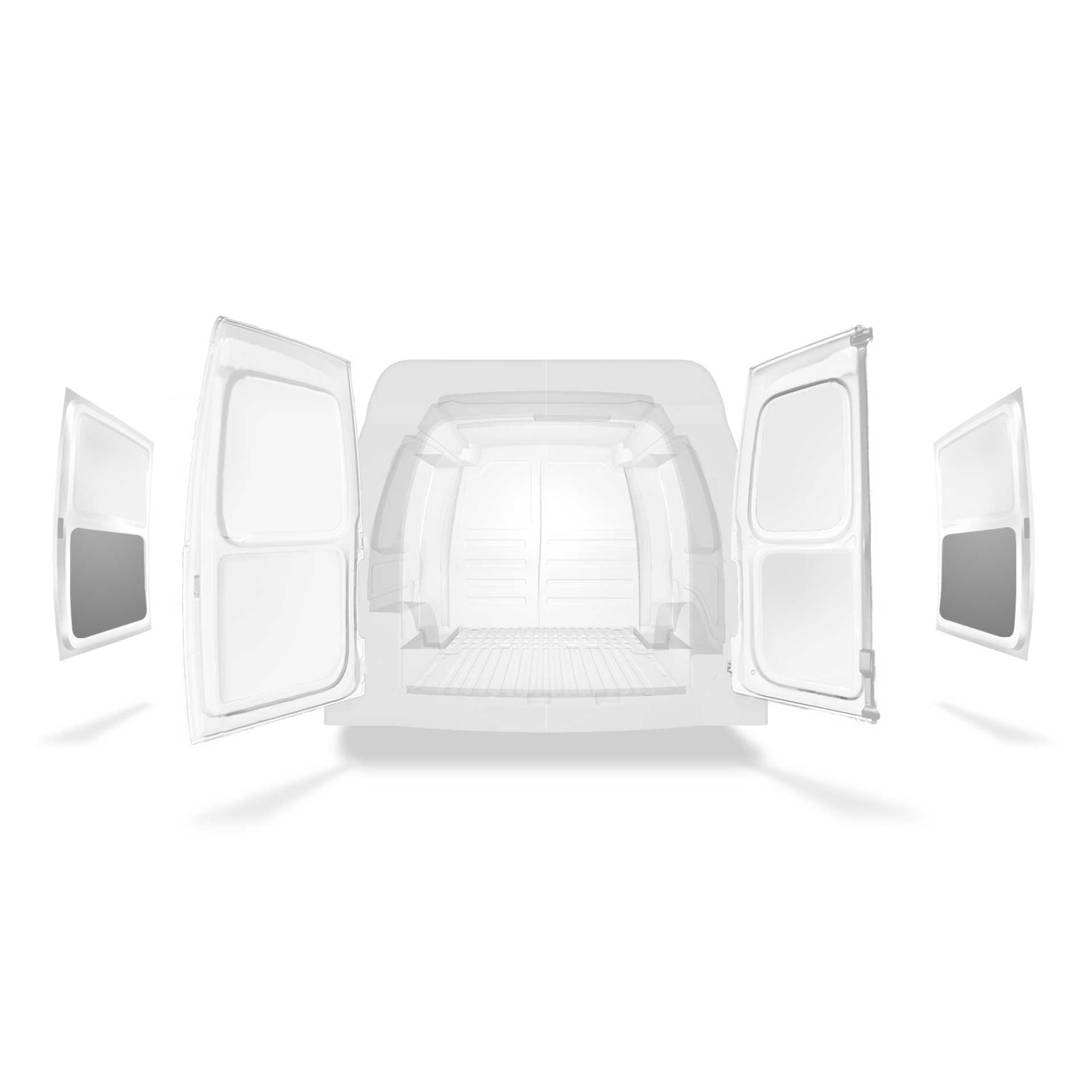 Beklädnad för innerväggar, bakdörrar samt tak säljes separat. Monteringsmaterial säljes också separat.