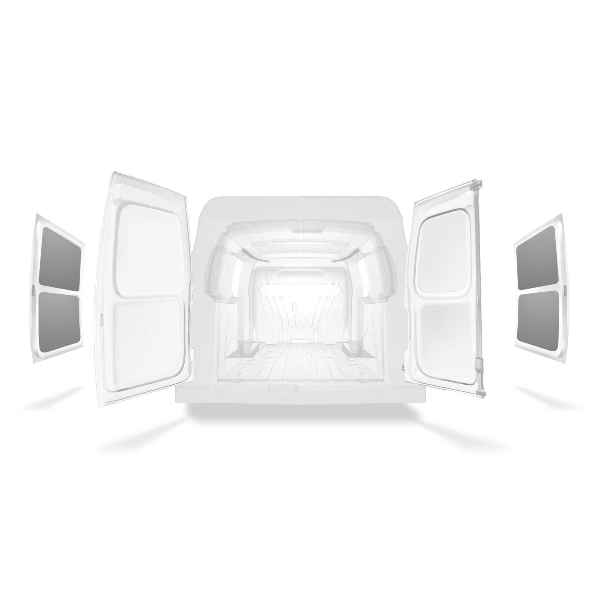 Beklädnad för innerväggar, bakdörrar samt tak säljes separat. Monteringsmaterial säljes också separat.