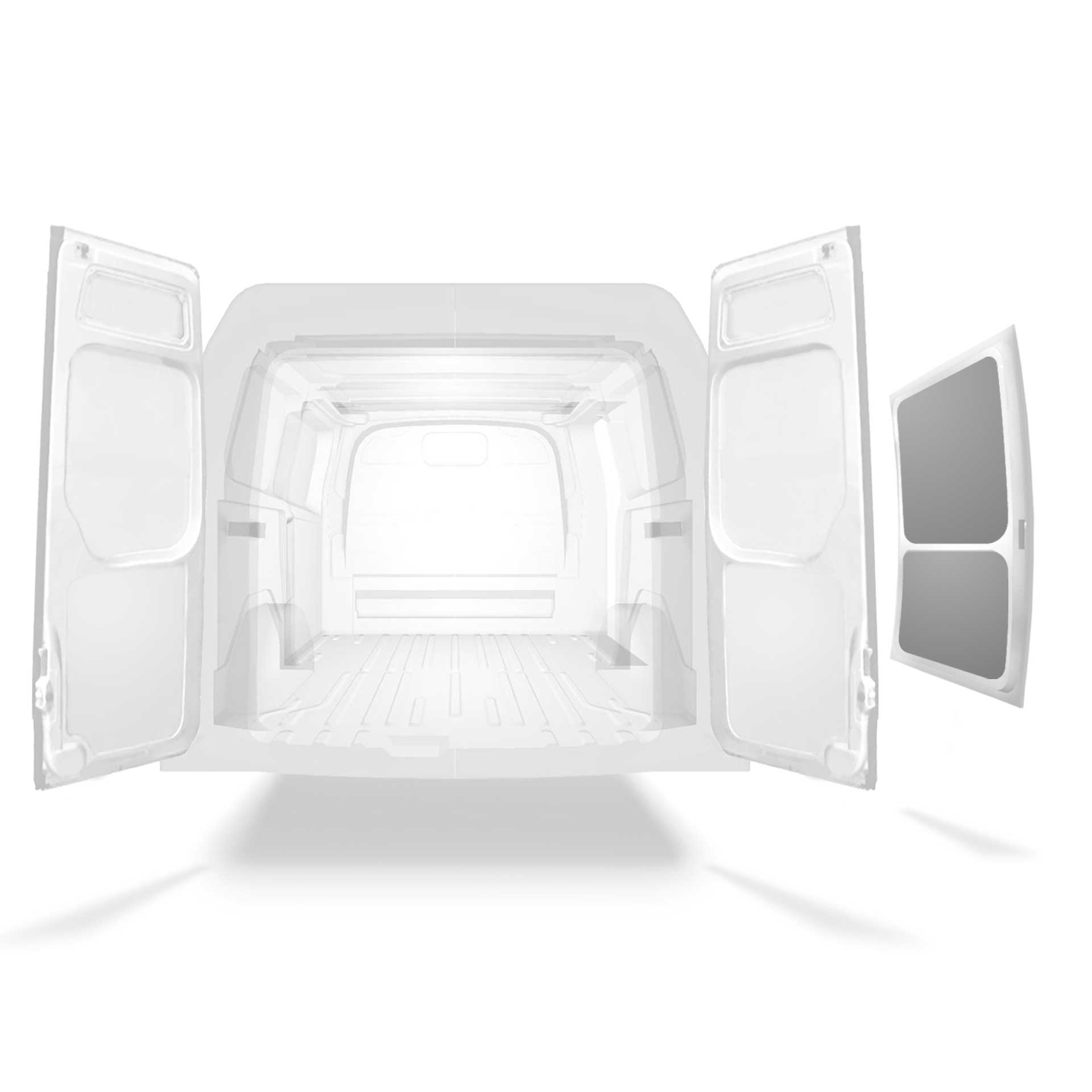 Beklädnad för innerväggar, bakdörrar samt tak säljes separat. Monteringsmaterial säljes också separat.