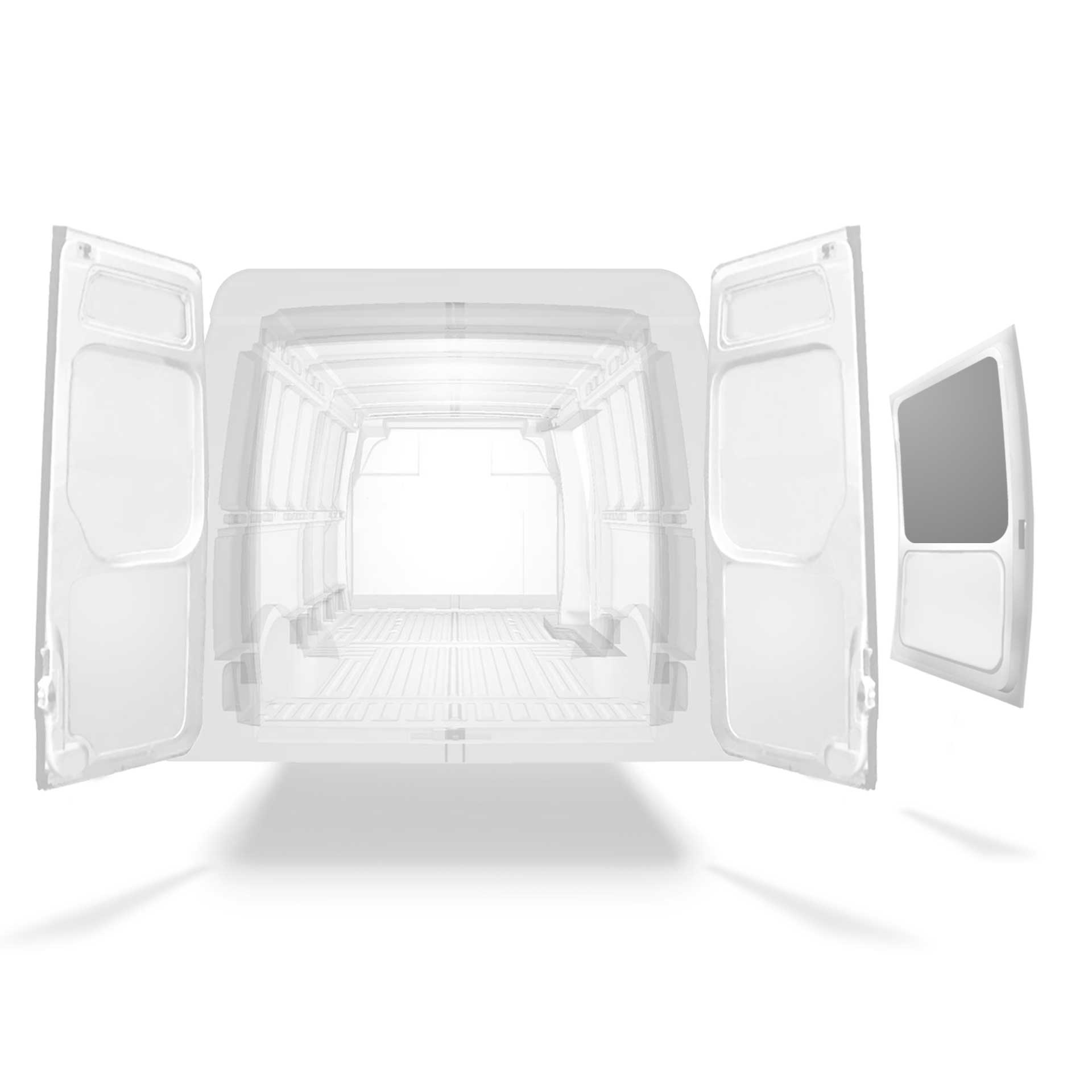 Beklädnad för innerväggar, bakdörrar samt tak säljes separat. Monteringsmaterial säljes också separat.
