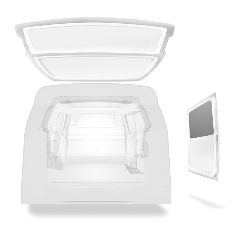Beklädnad för innerväggar, bakdörrar samt tak säljes separat. Monteringsmaterial säljes också separat.