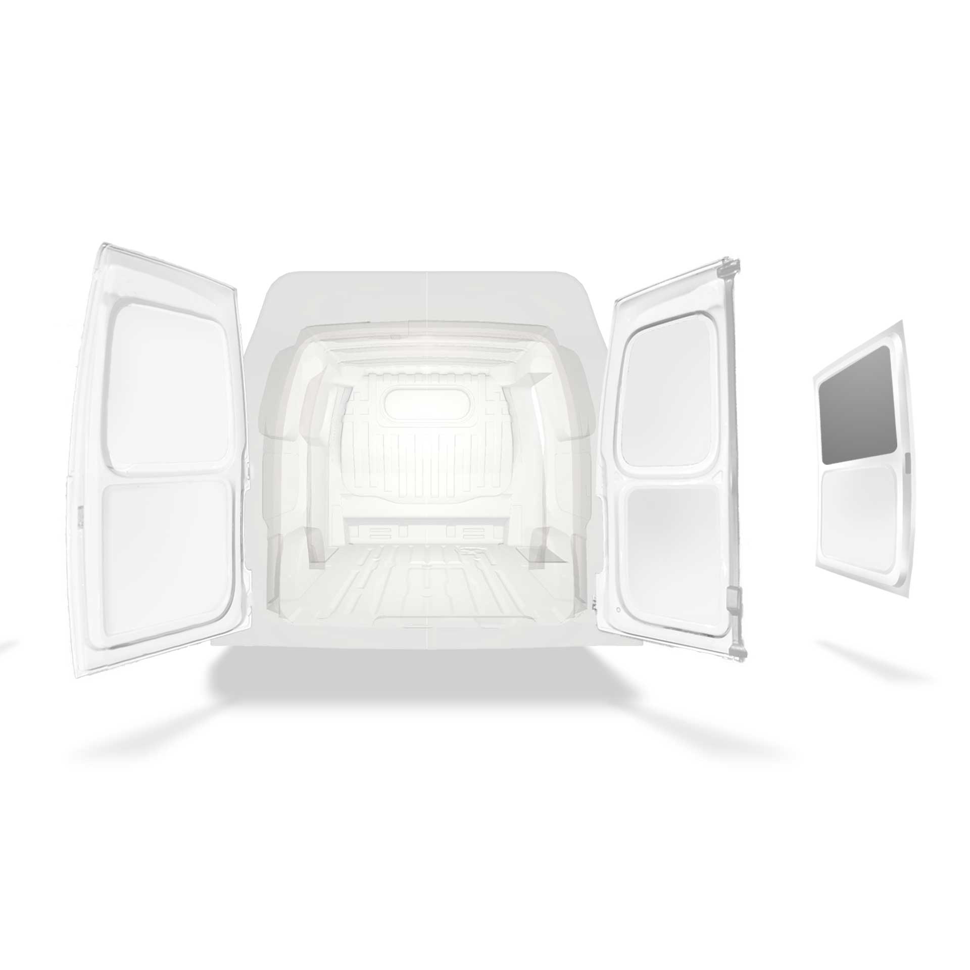 Beklädnad för innerväggar, bakdörrar samt tak säljes separat. Monteringsmaterial säljes också separat.
