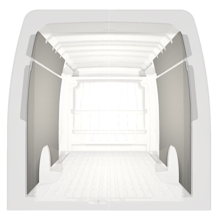 Den färdigskurna beklädnaden är designad för att täcka hela fordonets innerväggar och monteras med skruv.