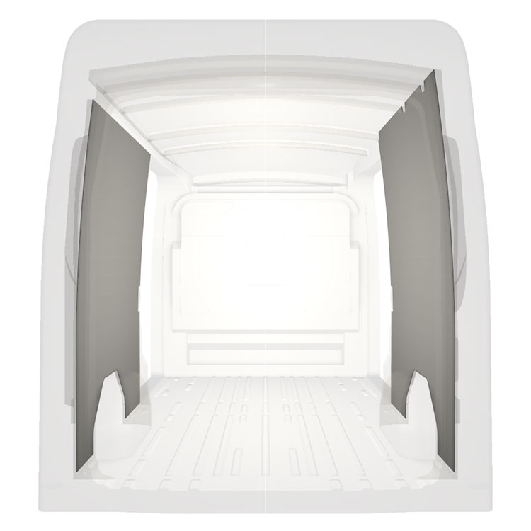 Den färdigskurna beklädnaden är designad för att täcka hela fordonets innerväggar och monteras med skruv.