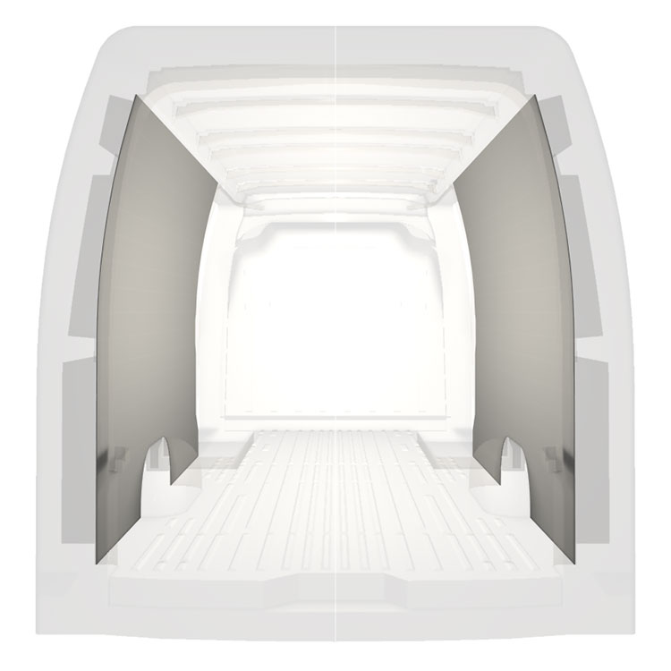Den färdigskurna beklädnaden är designad för att täcka hela fordonets innerväggar och monteras med skruv.