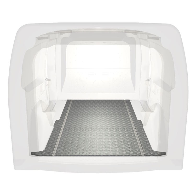 Lätt och robust golv med halkfri aluminiumdurk till en Opel Combo / Fiat Doblò. Golvets integrerade skenor (längsgående) används för snabb och säker installation av bilinredning och andra tillbehör.