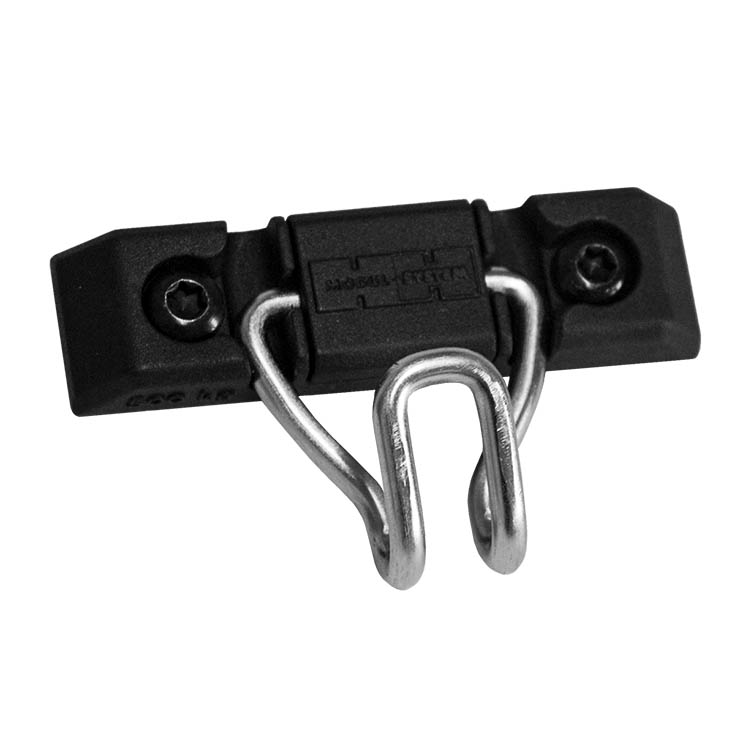 Lastsurrningskrok med snabbkoppling för montering direkt i T-spåret. Ingen extra lastförankringsskena är nödvändig. Lastkapacitet: max 500 kg.