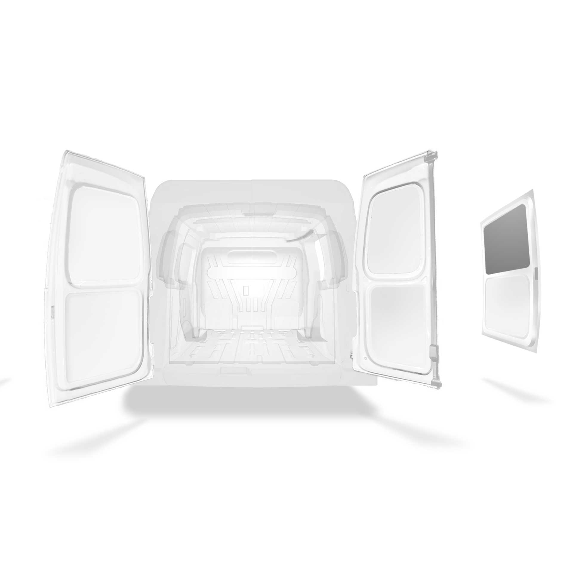 Beklädnad för innerväggar, bakdörrar samt tak säljes separat. Monteringsmaterial säljes också separat.