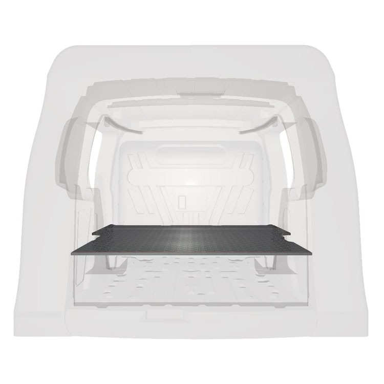 Double floor for a Ford Connect L1 2016-. The floor is designed to fit an extra-long drawer solution with one drawer unit 486x972x270 and one 648x972x270 coming out from the rear doors, and one drawer unit 324x1296x270 coming out from the side door.