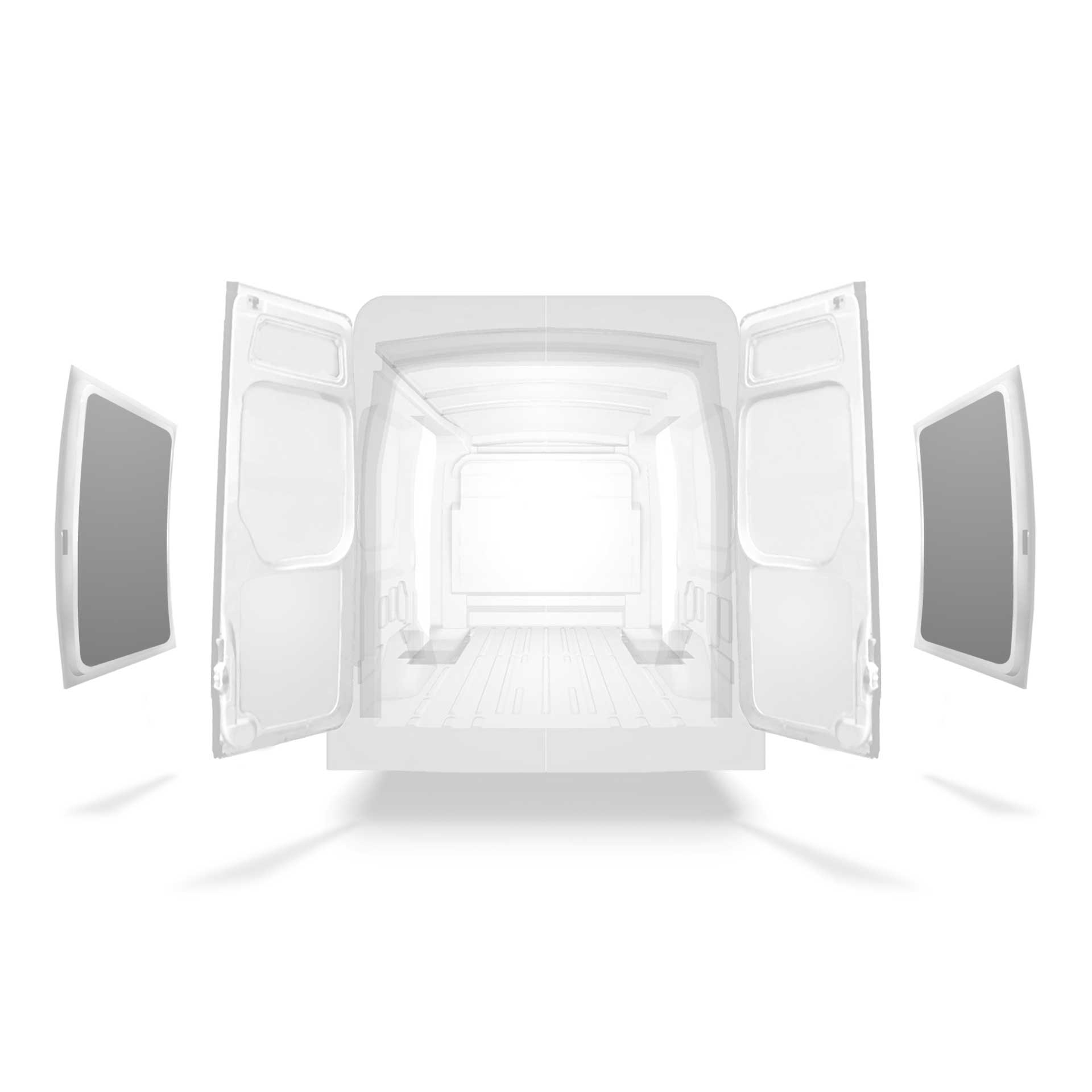 Beklädnad för innerväggar, bakdörrar samt tak säljes separat. Monteringsmaterial säljes också separat.